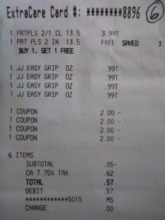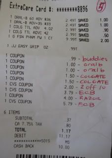 second transaction everything rang up right...except he said that my $1 off coupon exceeds the .99c amount of the item...so he could only do .99c off...WELL DUH! Also, I bought the fushion razor again...but forgot it was a LIMIT 1 and i already bought it the other day so I didn't get my $3 ECB's back for that.